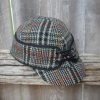 The shorter brim keeps your vision clear for all outdoor activities while still giving you a smooth drawback. This hat gives you three levels of protection with its combinations of quilted crown, slide down outer and pull-down inner flaps. A completely redesigned, ruggedly handsome, practical, every day wear hat. Green  Tweed is a blend of green, black, beige, rust, tan and gold.