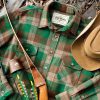 This mid-weight woolen shirt is perfect for any time in any climate. It can be worn alone or layered under as well as over other apparel. Little Delta Plaid is woven brown, green, and heather.